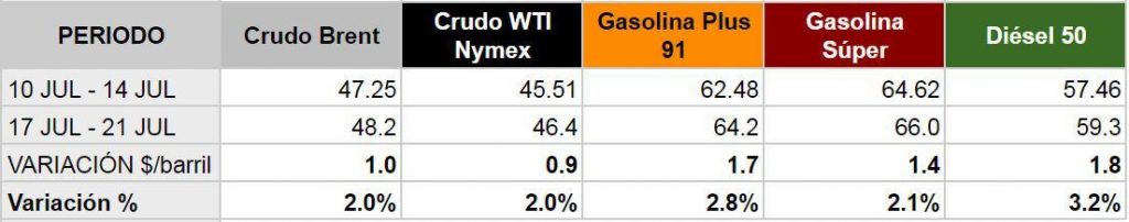 Promedio semanal de los precios de los combustibles en el mercado internacional Del 17 al 21 de julio de 2017