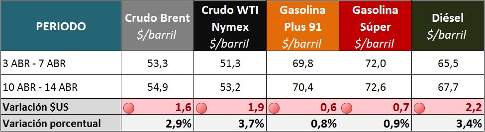 Promedio semanal de los precios de los combustibles en el mercado internacional Del 10 al 14 de abril de 2017