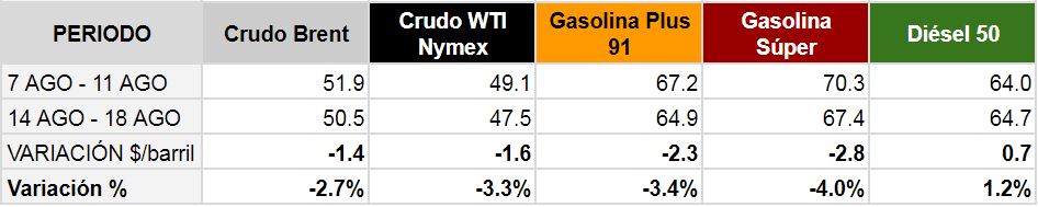 Europa.  El gasóleo se sitúa en 1,07 euros y la gasolina en 1,19 euros. A pesar del descenso, los carburantes mantienen precios muy cercanos a los máximos del verano.  Los precios del gasóleo y de la gasolina han roto esta semana con la espiral alcista del último mes al experimentar su primera caída en lo que va de agosto, alejándose así de los máximos del verano que tocaron hace siete días. En concreto, el precio medio del litro de gasóleo se situó esta semana en los 1,07 euros, tras haberse abaratado un 0,27%, cortando de esta manera la racha de cuatro semanas al alza que había encadenado, según datos del Boletín Petrolero de la Unión Europea (UE).