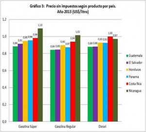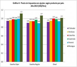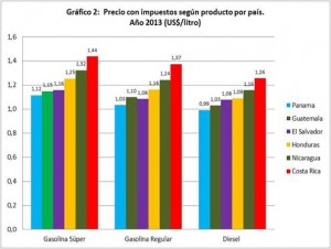 Panamá mejora su ubicación en la gasolina regular y el diésel. El desempeño de Costa Rica mejoraría aún más, si se considera en el análisis, el costo de la regulación y el sobreprecio de las gasolinas y el diésel con el que se subsidia a otros combustibles, ambos conceptos representaron en el 2013 alrededor  de $0,02 por litro.