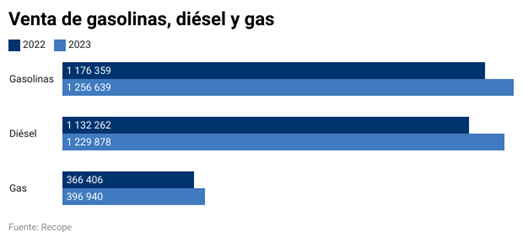 Comparación de la venta de gasolinas, diésel y gas entre 2022 y 2023
