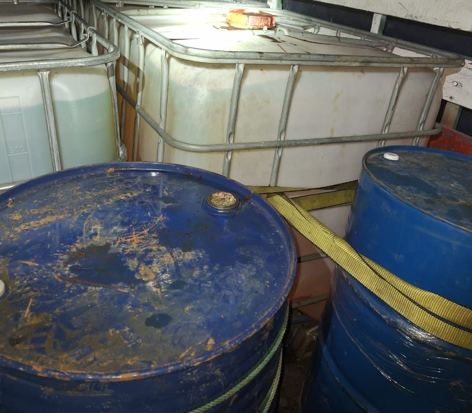 Tanquetas y estañones de diésel decomisados en Turrialba.