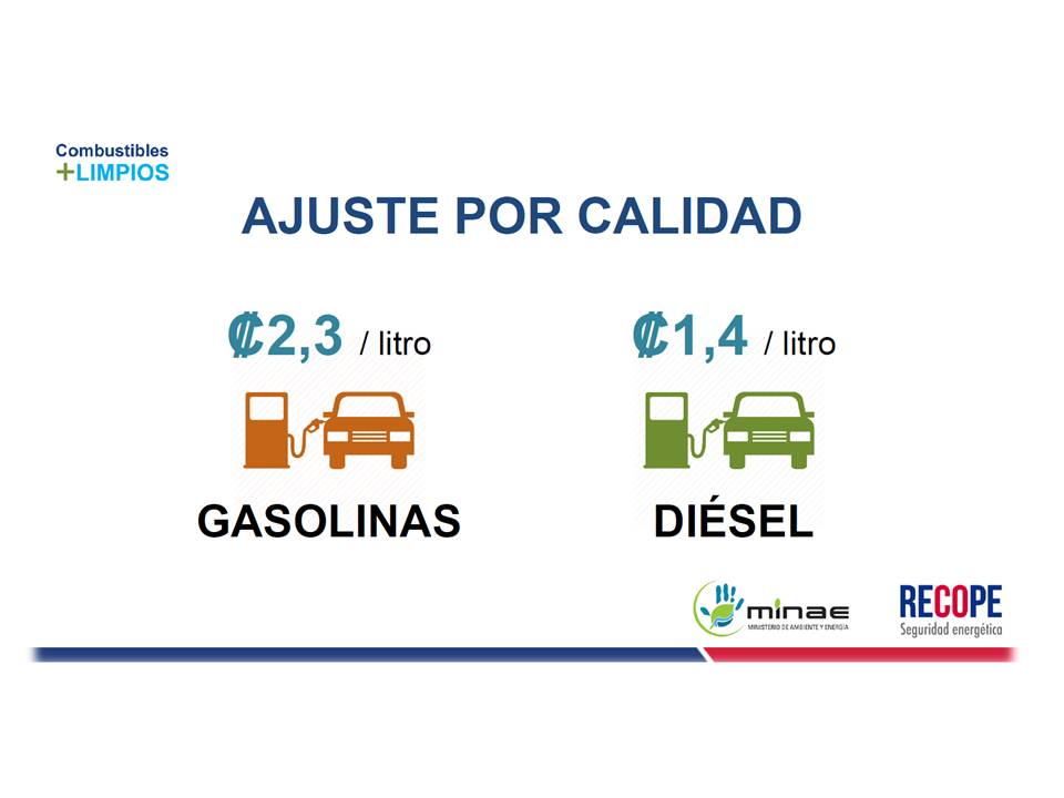 Dado que la calidad es uno de los factores determinantes del precio, para iniciar la importación de los combustibles con los nuevos parámetros de calidad, RECOPE solicitó a la Aresep en el estudio ordinario 2017 un ajuste de precios; y el ente regulador se comprometió a realizarlo, una vez verificada la nueva calidad en los productos.