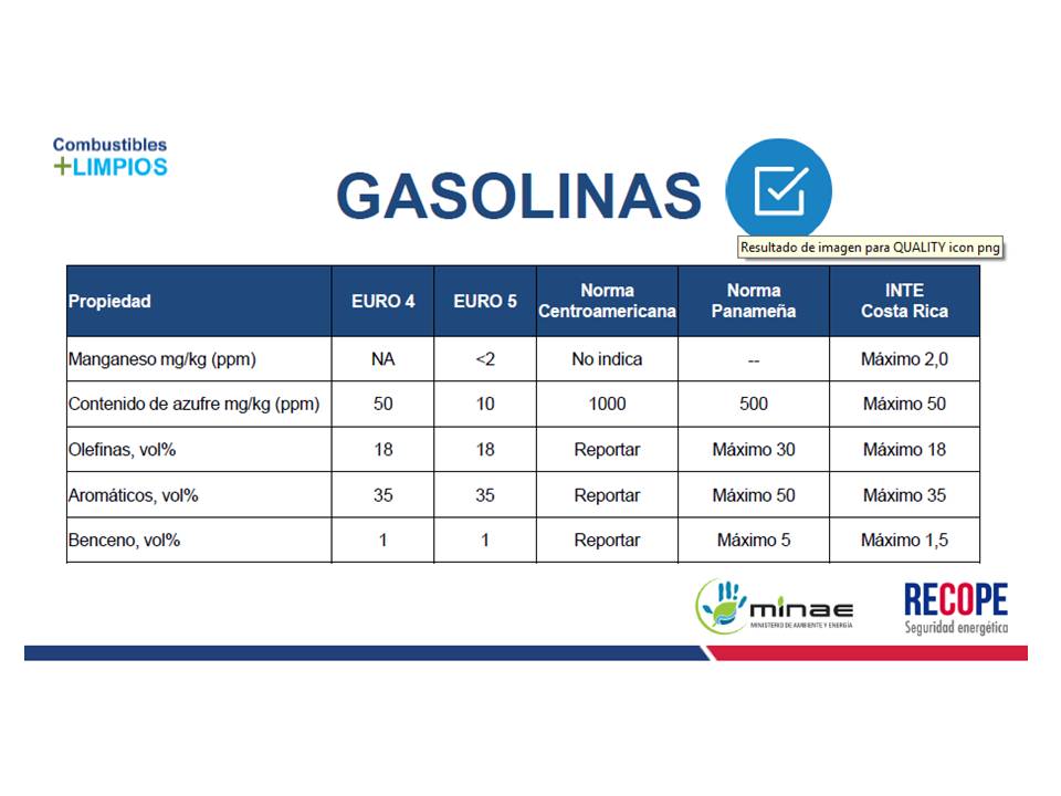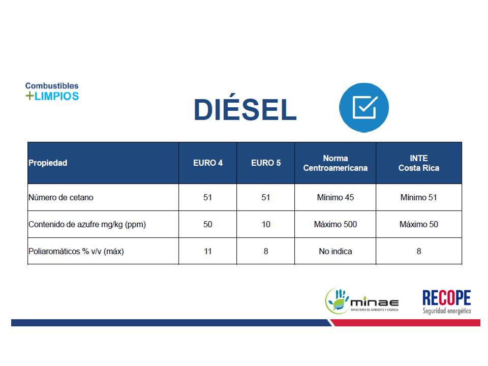 El MINAE solicitó al Instituto de Normas Técnicas de Costa Rica (INTECO), la conformación de un comité técnico para definir los parámetros de una norma que colocara los combustibles a la altura de las normas Euro IV.