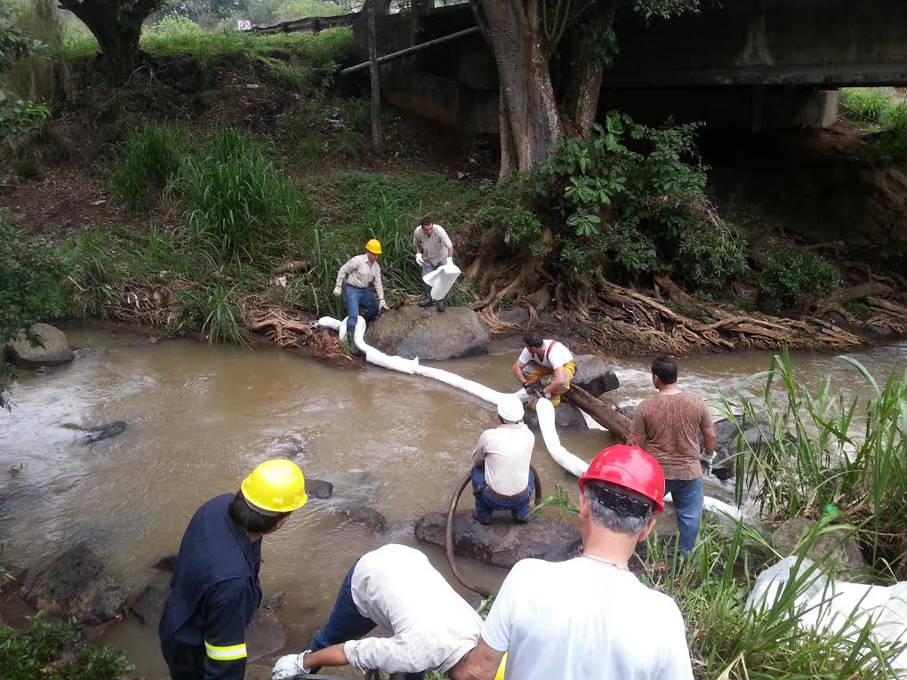 El pasado 5 de mayo se efectuó de manera exitosa, un ejercicio de atención de un supuesto derrame de combustible en el Río Alajuela, que pasa por las inmediaciones del Plantel de la Refinadora Costarricense de Petróleo (RECOPE S.A.) ubicado en La Garita.