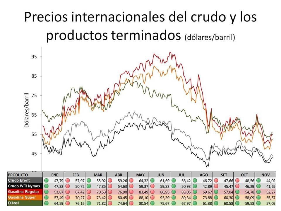 Aunque el precio del crudo venía descendiendo desde principio del año,  por la sobreoferta global, los productos refinados no tuvieron  este  mismo comportamiento y a mediados del año mostraron una tendencia al alza que elevó el diferencial entre el petróleo y los terminados en cerca de 25 dólares.