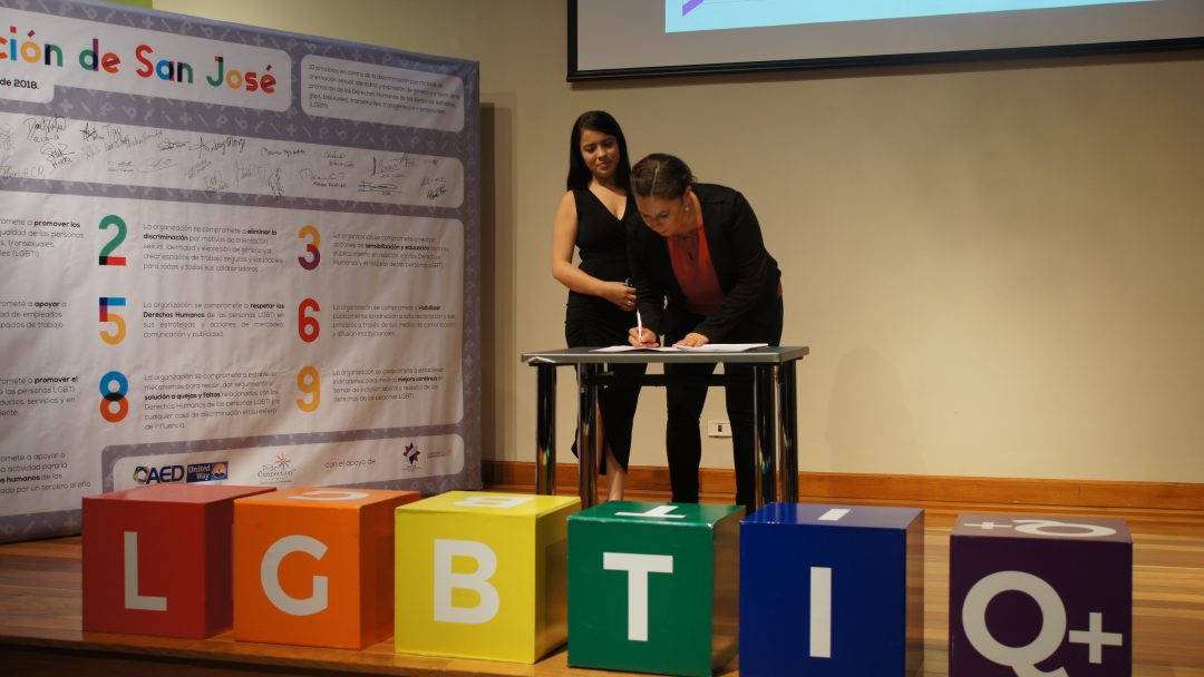 El día de hoy representantes de empresas públicas y privadas firmaron sus compromisos empresariales para promover en el ambiente laboral, espacios de trabajo inclusivos y respetuosos, según lo establecido en laDeclaración de San José.
