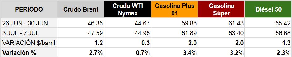 Promedio semanal de los precios de los combustibles en el mercado internacional Del 03 al 07 de julio de 2017