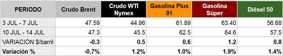 Promedio semanal de los precios de los combustibles en el mercado internacional Del 10 al 14 de julio de 2017