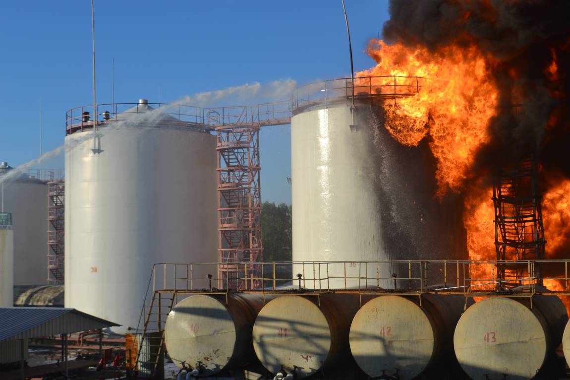 En Ucrania: Un gigantesco incendio en un depósito de petróleo cerca de Kiev, causó la muerte de un civil y la desaparición de tres bomberos