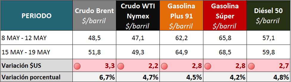 Promedio semanal de los precios de los combustibles en el mercado internacional Del 15 al 19 de mayo de 2017
