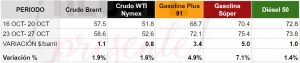 Promedio semanal de los precios de los combustibles en el mercado internacional Del 23 al 27 de octubre de 2017