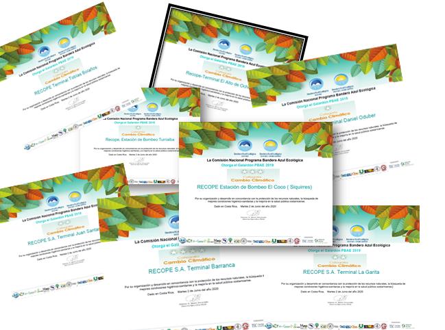 Excelentes noticias,  este año recibieron por primera vez el galardón del Programa de Bandera Azul Ecológica en la categoría de Cambio Climático las instalaciones de Siquirres, Turrialba, El Alto, La Garita, Barranca y los Aeropuertos Internacionales: Tobías Bolaños, Juan Santamaría y Daniel Oduber,  ocho nuevas  terminales de RECOPE que se suman a Operaciones y Construcción de Moín y el Edificio Hernán Garrón en San José,  que las mantienen desde hace varios años.