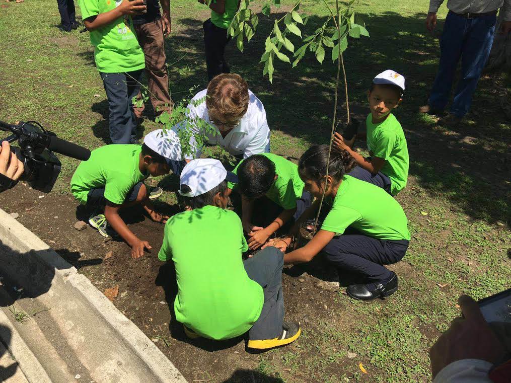 La Empresa llevó al espacio ferial a los estudiantes de la escuela de Islita, quienes participaron de la siembra de árboles con especies propias de la zona, junto con la Presidenta de RECOPE, Sara Salazar Badilla y autoridades municipales.