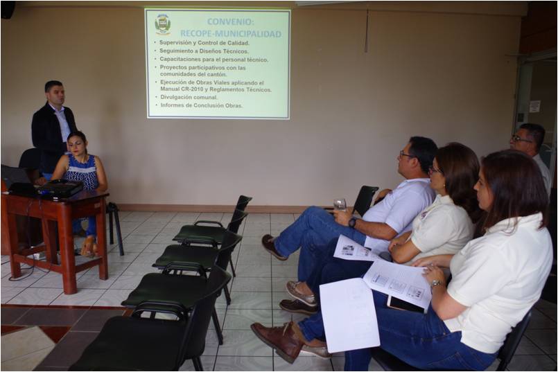 El viernes 10 de agosto, el presidente de RECOPE, Alejando Muñoz visitó Poás, el cantón 8 de la provincia de Alajuela, invitado por las autoridades de la Municipalidad del lugar, quienes le hicieron una presentación sobre el trabajo que viene realizando este ayuntamiento en proyectos de bacheo y recarpeteo, donde ha sido fundamental el aporte de RECOPE a través del Programa Caminos para el Desarrollo.