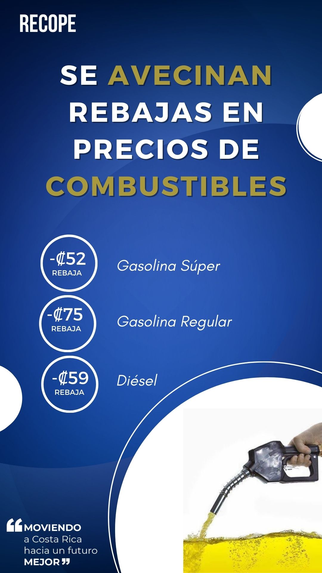 Según a Juan Manuel Quesada, presidente de Recope, “el día de ayer venció el plazo de la consulta pública, por lo que esperamos que la Aresep resuelva pronto estas rebajas y con ello traer alivio nuevamente al bolsillo de los costarricenses.”