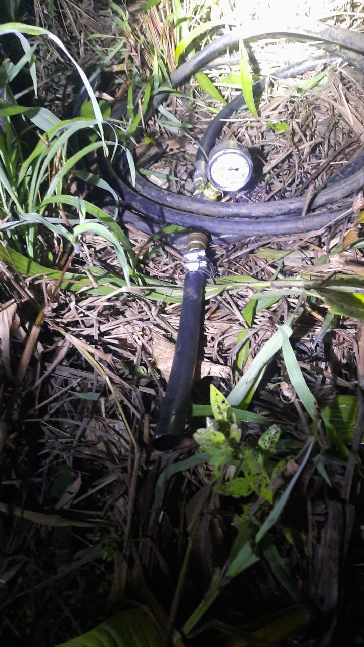 Posterior a la huida de los sospechosos, se intervino una toma ilegal y se decomisaron manómetros y una manguera de gran longitud.