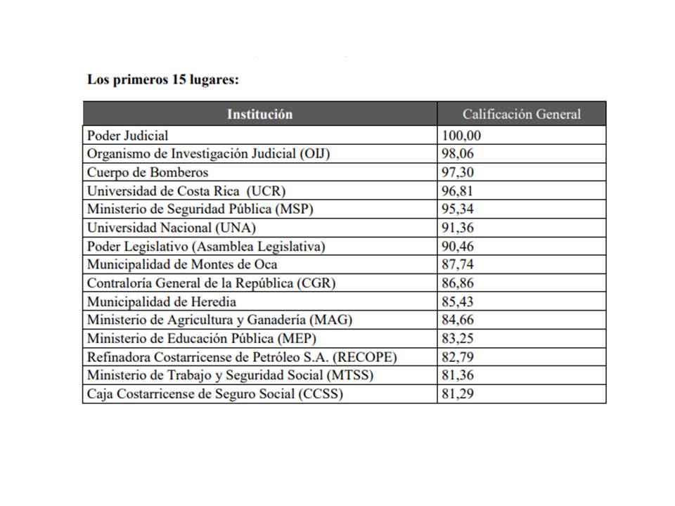 Por otro lado, dentro de la clasificación general del ITSP, RECOPE ocupa este año la posición No 13 entre las 254 instituciones públicas evaluadas.