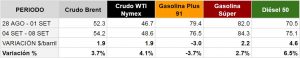 Promedio semanal de los precios de los combustibles en el mercado internacional Del 04 al 08 de septiembre de 2017