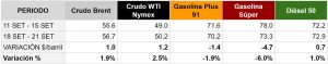 Promedio semanal de los precios de los combustibles en el mercado internacional Del 18 al 21 de septiembre de 2017