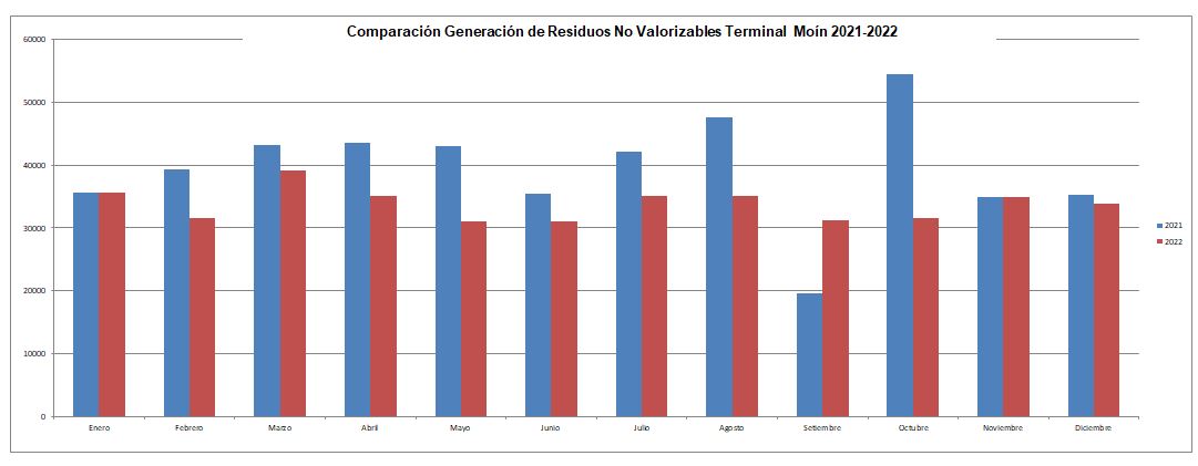 Gracias a la eficiente gestión en el manejo de residuos en la Terminal Moín y las campañas de divulgación, recolección y el programa de gestión de residuos se ha logrado disminuir el consumo de papel en siete de los doce meses entre el 2021 y 2022.