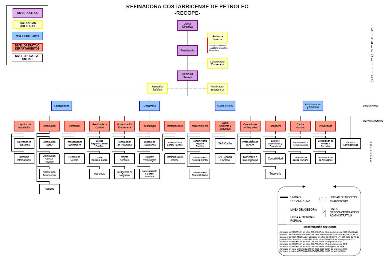 A continuación se disponen los documentos generados por el proceso de reorganización administrativa de RECOPE.